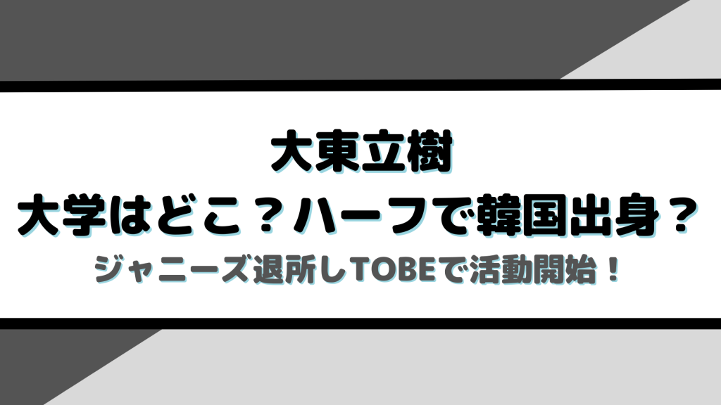 大東立樹大学どこでハーフの韓国出身?ジャニーズ退所TOBEへ